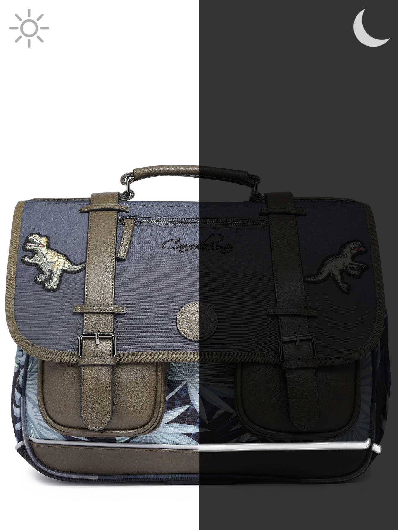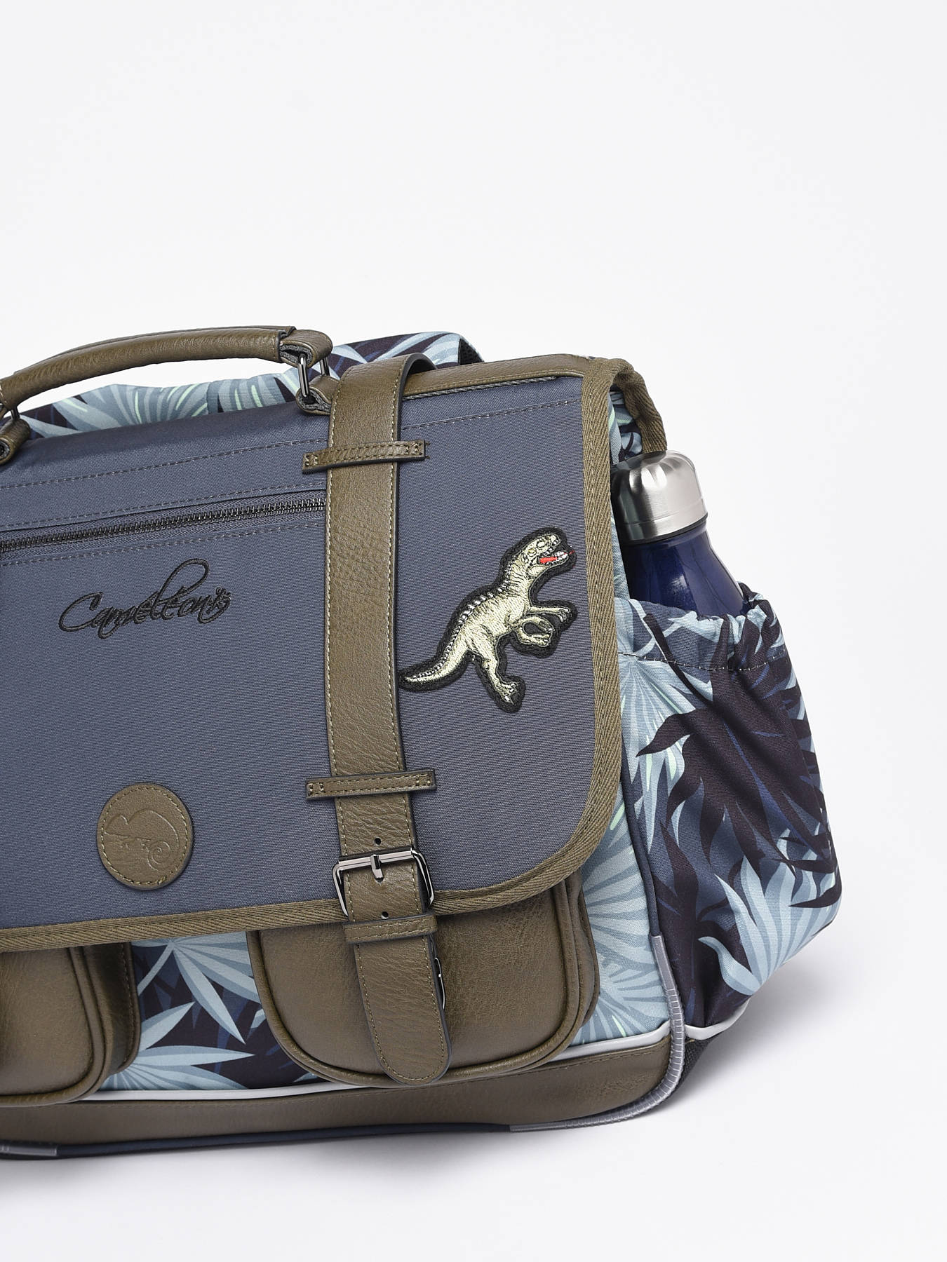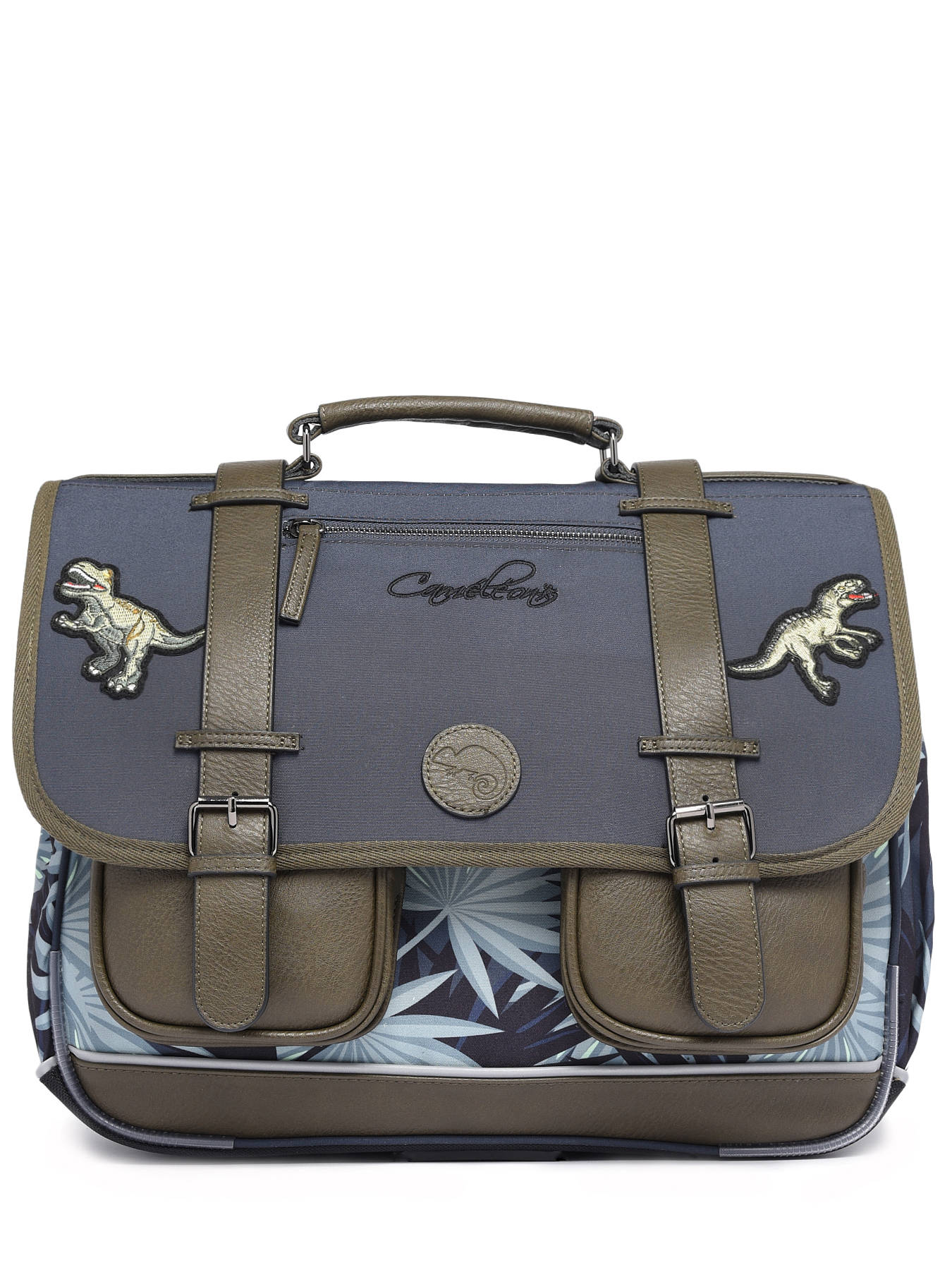 41 cm - 24 liter - 1.33 kg ~ Deze schooltas uit de Vintage collectie van het merk Caméléon heeft een breedte van 41 cm. Ideaal voor vanaf het 4de leerjaar! Dit model heeft een duidelijke vintage look, dankzij twee voorvakjes en de riempjes met gespen. De schooltas beschikt over drie ruime compartimenten, die schriften (24x32 cm), mappen en schoolboeken van A4 formaat kunnen bevatten. Onder de overslagflap bevindt zich ook een uniek opbergvakje, voorzien van een gratis liniaal. De twee kleine ritsvakjes vooraan zijn perfect om een snack of andere kleine spulletjes in te stoppen. Dit model beschikt ook over een naamlabel aan de achterzijde, en kan makkelijk gesloten worden dankzij een dubbel kliksysteem. Voor optimaal comfort zijn de rugzijde en schouderbanden extra gewatteerd. Dankzij enkele reflectoren kan uw kind zich ook veilig in het verkeer begeven. Vintage op z'n mooist!