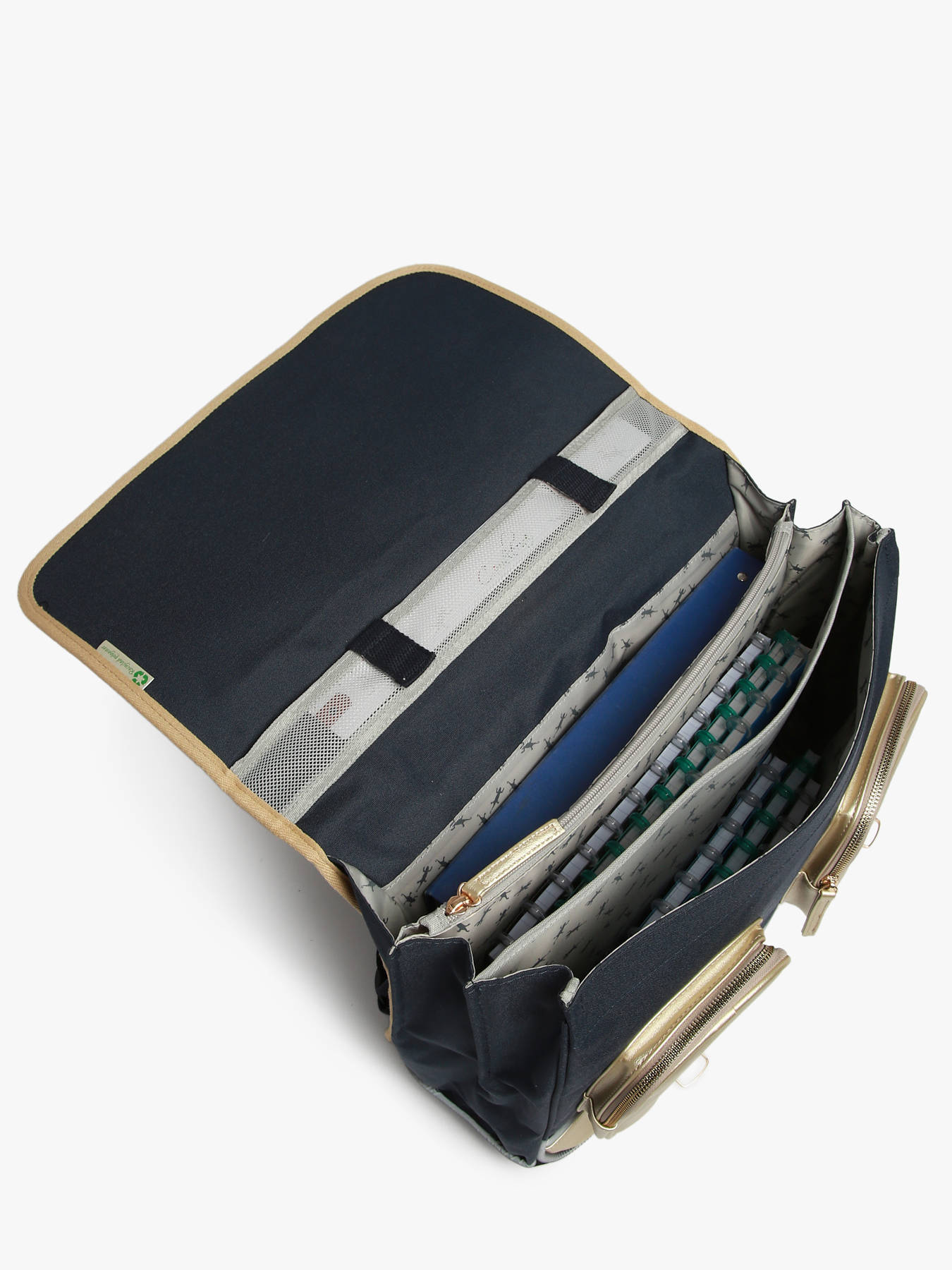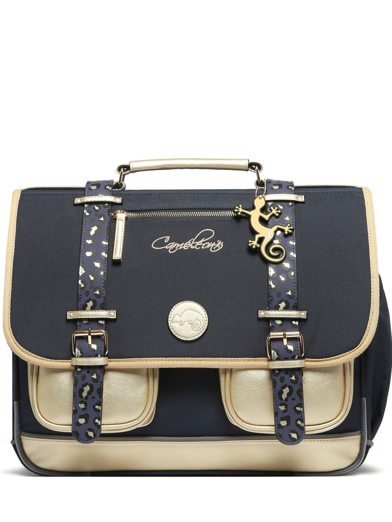 Deze schooltas uit de Vintage Fantasy collectie van het merk Caméléon heeft een breedte van 41 cm. Ideaal vanaf het 4de leerjaar! Dit model heeft een duidelijke vintage look, dankzij twee voorvakjes en de riempjes met gespen. De schooltas beschikt over drie ruime compartimenten, die schriften (24x32 cm), mappen en schoolboeken van A4 formaat kunnen bevatten. Onder de overslagflap bevindt zich ook een uniek opbergvakje, voorzien van een gratis liniaal. De twee kleine ritsvakjes vooraan zijn perfect om een snack of andere kleine spulletjes in te stoppen. Dit model beschikt ook over een naamlabel aan de achterzijde, en kan makkelijk gesloten worden dankzij een dubbel kliksysteem. Voor optimaal comfort zijn de rugzijde en schouderbanden extra gewatteerd. Dankzij enkele reflectoren kan uw kind zich ook veilig in het verkeer begeven. Vintage op z'n mooist!