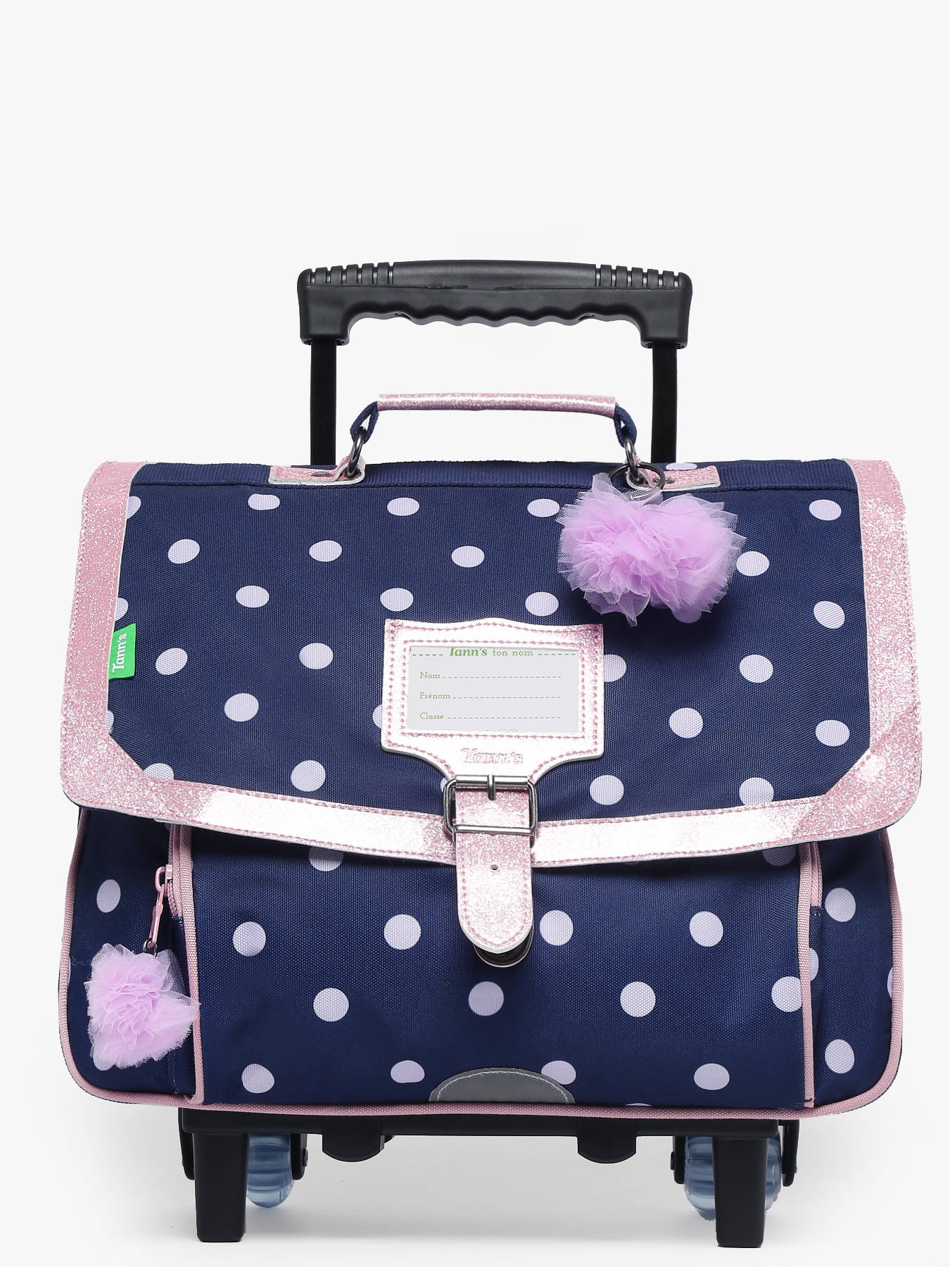 38 cm - 14 liter - 2.1 kg ~ Deze trolley met 2 vakken van het merk TANN’S, gemaakt van gerecycled polyester, combineert gebruiksgemak en comfort voor leerlingen van groep 3, 4 en 5 of voor leerlingen vanaf het eerste leerjaar. De flap met sluiting beschermt de inhoud optimaal. Deze tas biedt veel opbergruimte met twee vakken geschikt voor A4-mappen, schriften tot 24x32 cm en A4-ordners. Een binnenvak met rits zorgt voor veilige opslag van kleine spullen, terwijl een voorvak snelle toegang tot essentiële spullen biedt. Lichtgewicht en uitgerust met verstelbare schouderbanden, kan deze tas comfortabel op de rug gedragen worden of gemakkelijk worden voortgetrokken met de handige wieltjes om de rug te ontlasten. Stevig, functioneel en milieuvriendelijk, begeleidt hij het kind stijlvol en zorgeloos door het schooljaar.