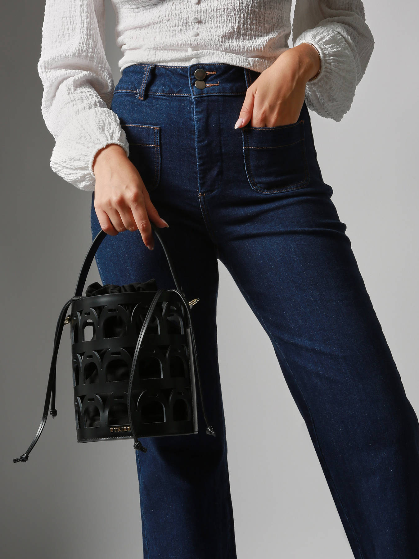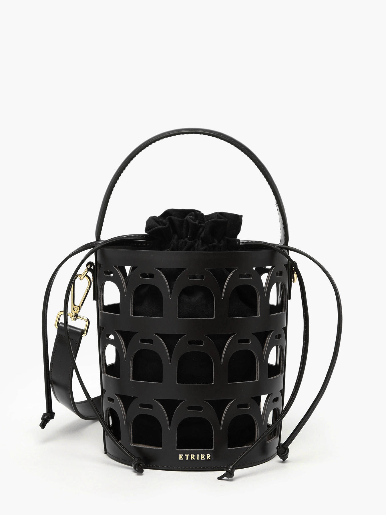De cross body tas uit de EPONA-lijn van ETRIER charmeert met zijn gestructureerde en eigentijdse ontwerp. Deze bucket bag, vervaardigd uit leer, valt op door zijn stijve, geometrische vorm en de subtiel geďntegreerde stijgbeugels – een discrete maar kenmerkende signatuur van het merk. De tas opent met een stoffen binnenzak voorzien van een trekkoord en is met een drukknoop aan de bodem bevestigd voor extra stabiliteit. Ontworpen om zich aan te passen aan elke stijlwens, kan hij met de hand worden gedragen dankzij het handvat, of crossbody met de verstelbare en afneembare schouderriem. Een modern en verfijnd accessoire dat elke outfit structuur en karakter geeft.