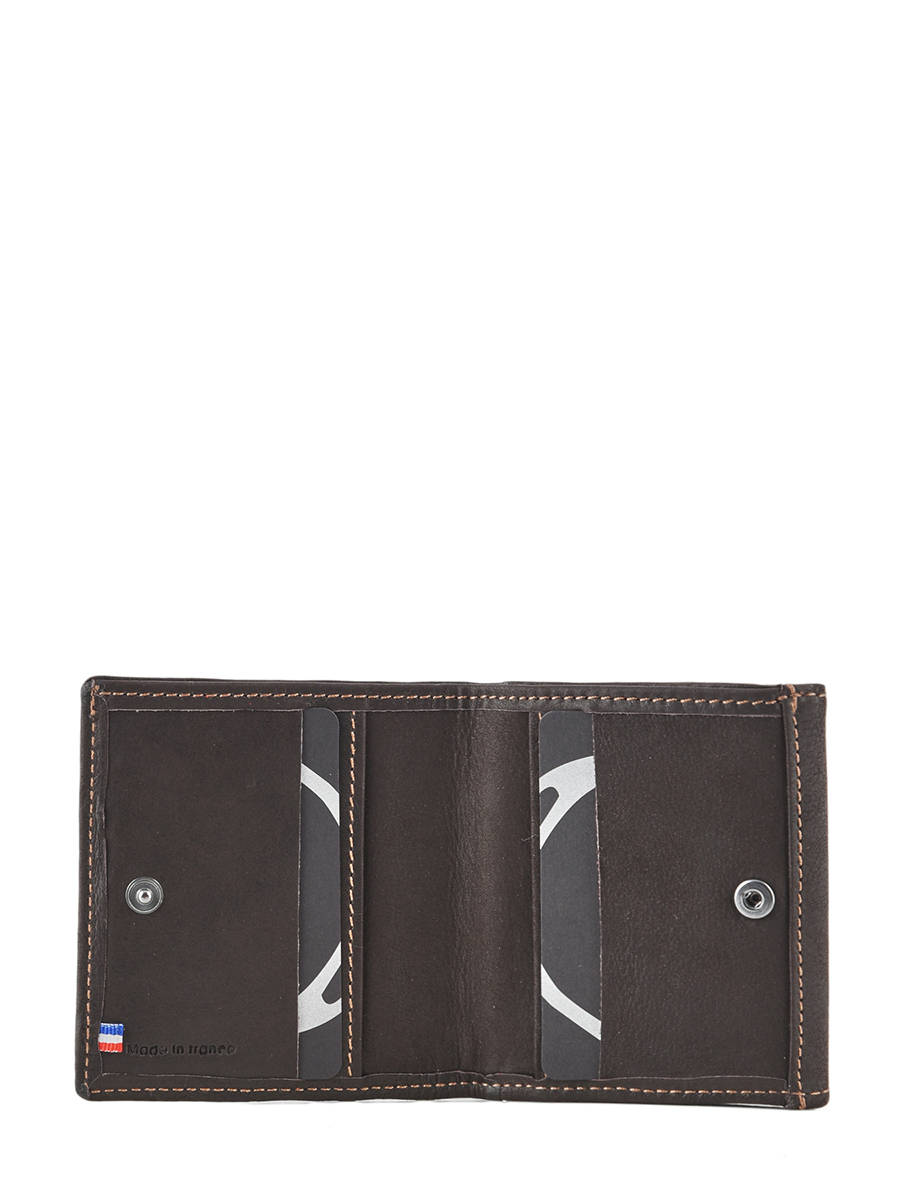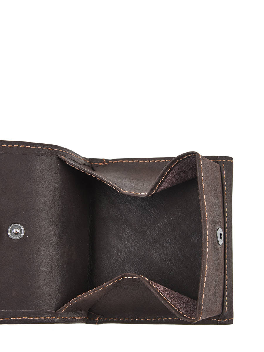 Deze rundslederen portemonee uit de Oil collectie van Etrier werd gefabriceerd in Frankrijk. Dit model beschikt over een zakje met een drukknopje voor uw muntstukken en vier kaartgleuven. Het compacte formaat laat het toe om deze portefeuille overal mee naartoe te nemen.
