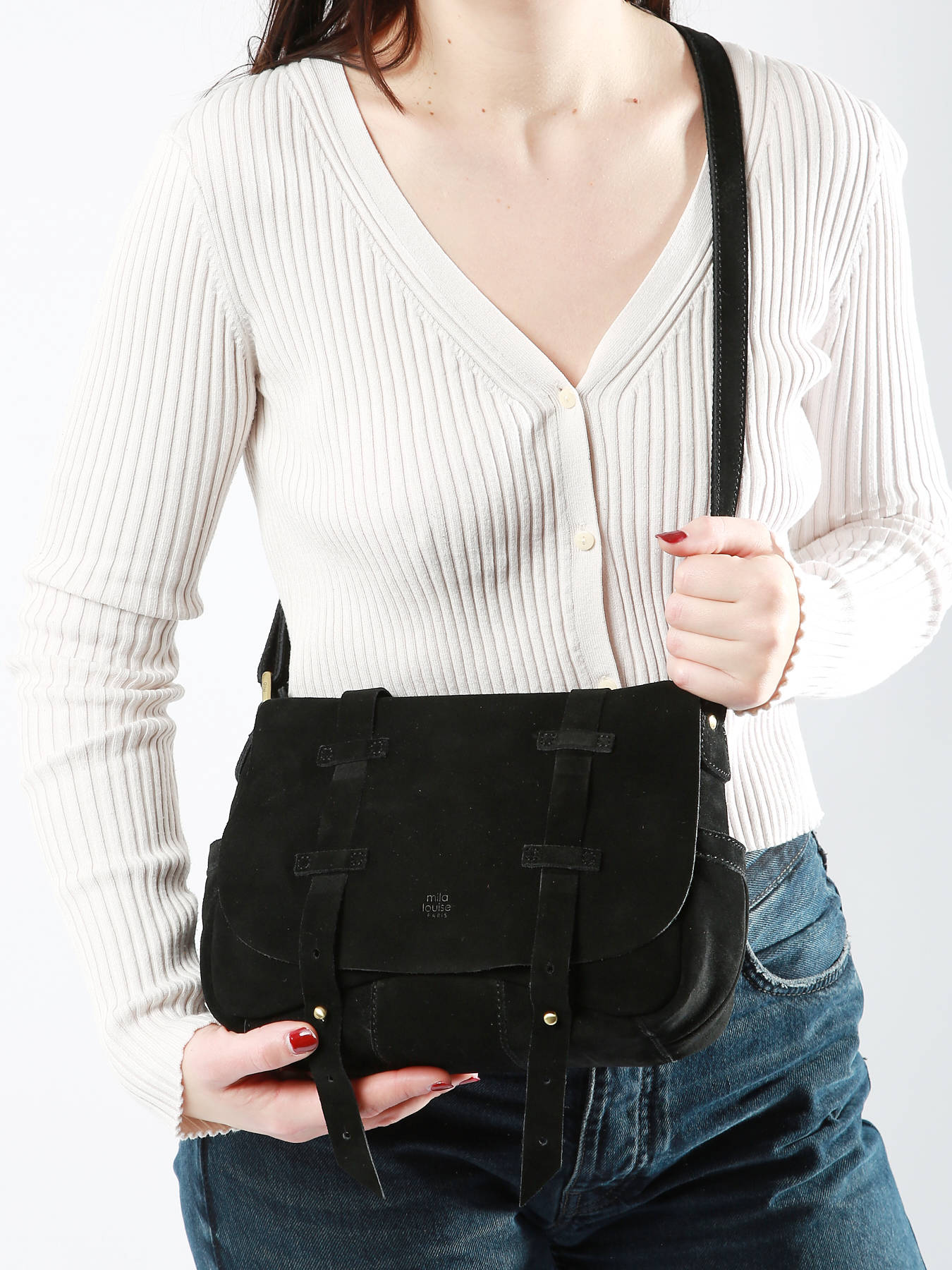 Deze cross body tas van het merk Mila Louise is gemaakt van ultrazachte suède, en is daarom ook uiterst aangenaam in aanraking! De overslagflap van dit soepele accessoire sluit met behulp van twee knopjes. Binnenin is een compact interieur met een handig ritsvakje voorzien, waar u uw spulletjes overzichtelijk in kunt opbergen. Ook aan de achterkant is een extra ritsvak te vinden. Het schouderriem is verstelbaar, en kan gekruist of lang over de schouder gedragen worden.