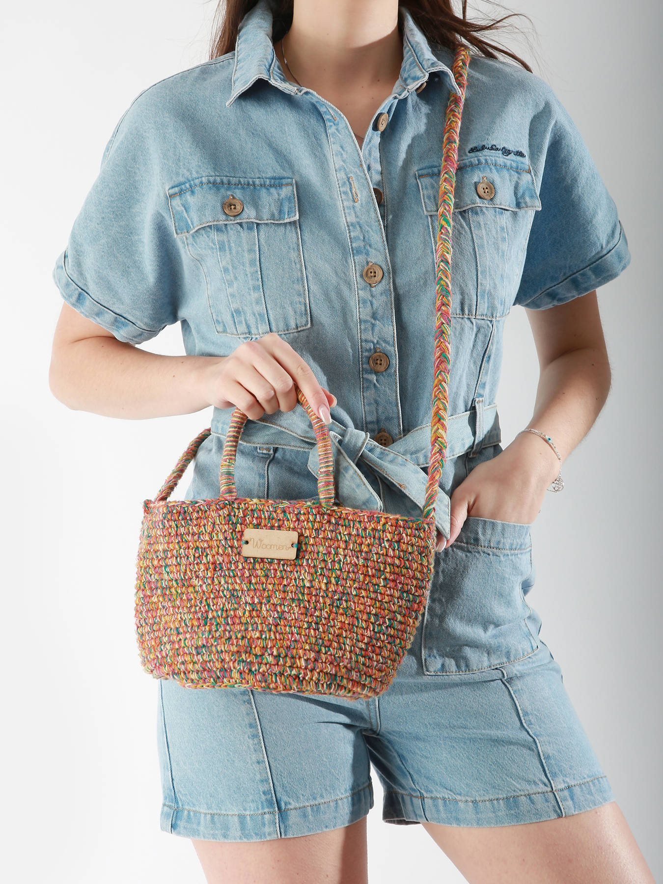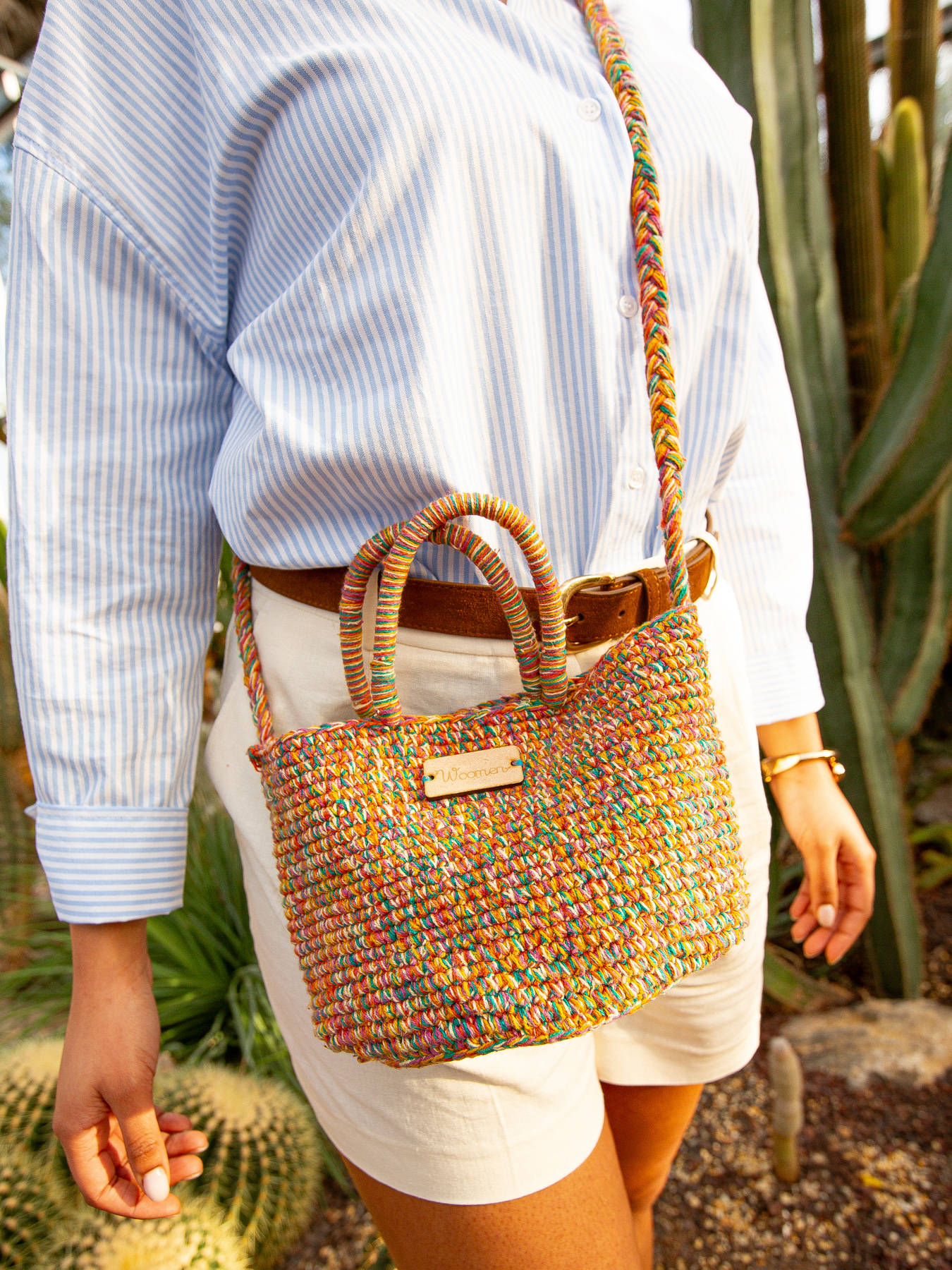 De WOOMEN-cross body tas uit de GERBERA lijn is gemaakt van katoen. Het weefsel weerspiegelt echt vakmanschap, waarbij elke draad die gebruikt wordt, een kleur uit de zomercollectie weerspiegelt, waardoor dit model een subtiele knipoog is naar de geest van het seizoen. Het kan aan de hand of gekruist gedragen worden en heeft een hoofdcompartiment met een afneembare binnenzakje met rits, voor een optimale organisatie van je spullen. Elegant en praktisch, het past bij al je wensen.