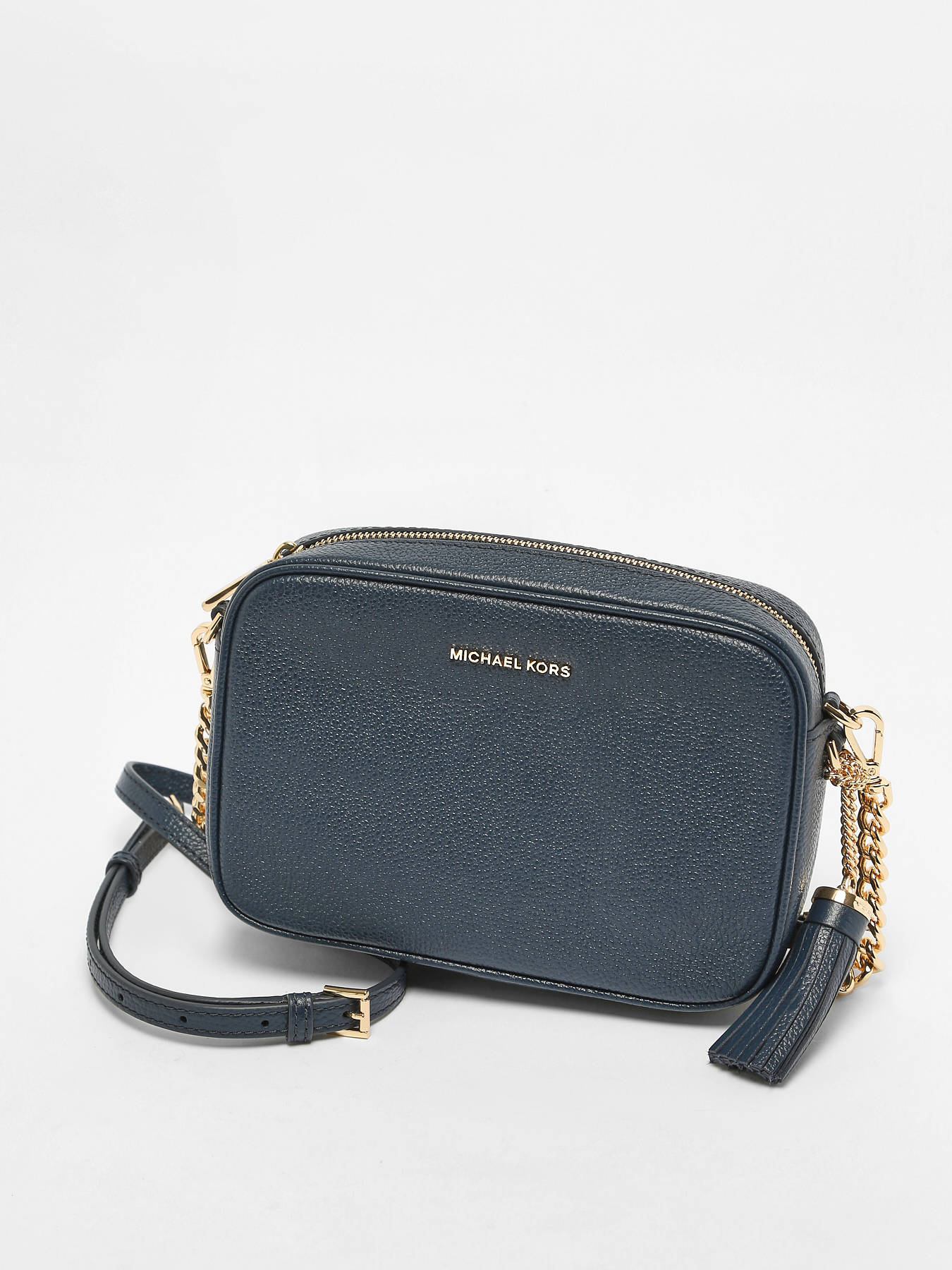 Deze charmante cross body tas uit de 'Ginny' collectie van Michael Kors is een musthave voor alle modelovers! Deze Michael Kors handtas is gemaakt van kwaliteitsvol rundsleer, en werd afgewerkt met goudkleurige accenten en een speels kwastje. De tas sluit met rits, en beschikt over een compact interieur met een open steekvakje en een ritszakje. De schouderriem met schakels is bovendien verstelbaar, en kan gekruist of lang over de schouder dragen. Wordt deze Michael Kors tas jouw favoriete accessoire dit seizoen?