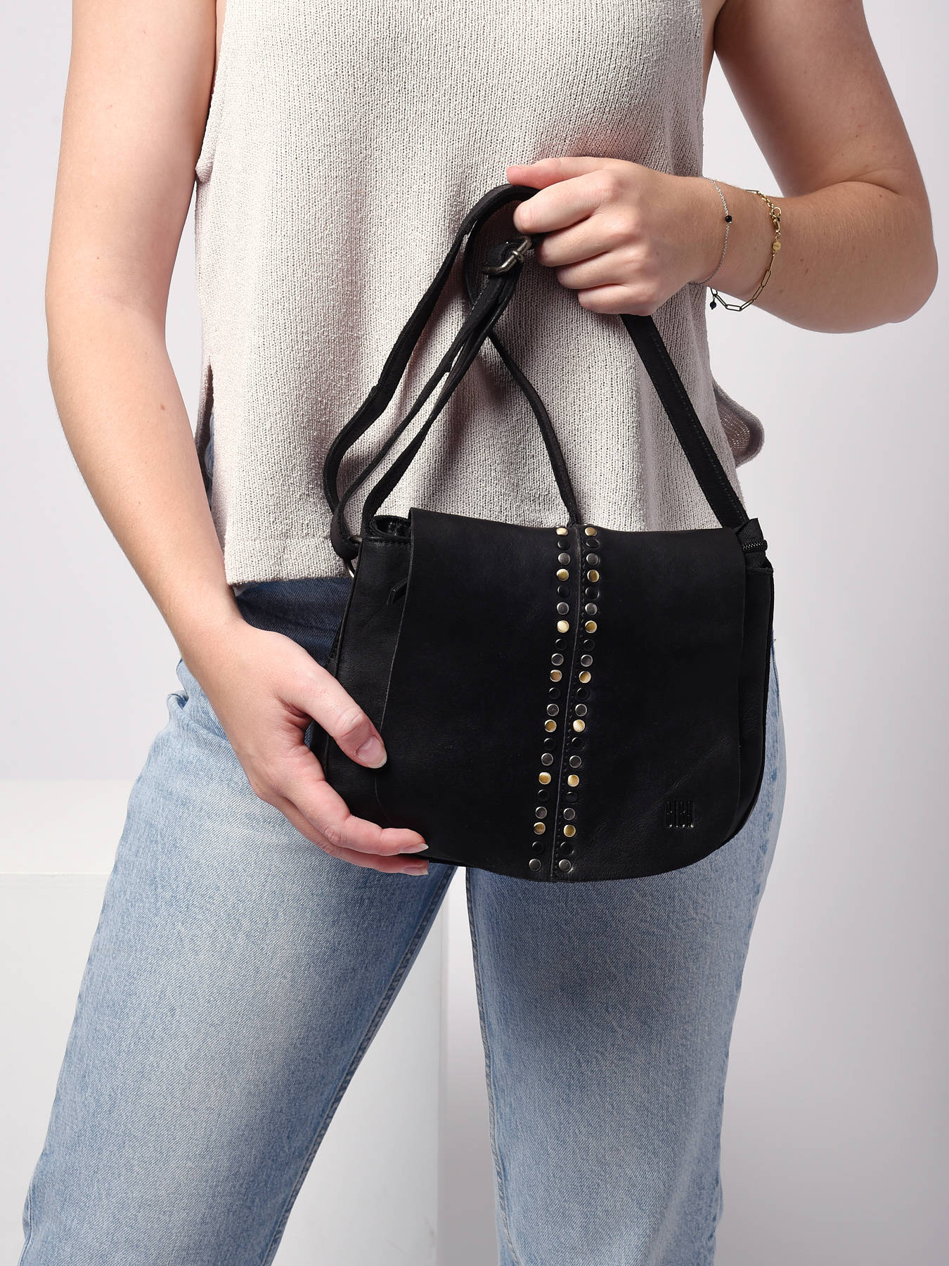 Voor dit seizoen biedt Biba je deze cross body tas uit de Heritage-lijn aan met een bohemien en tijdloze uitstraling. Deze tas voor dames is gemaakt van mooi, hoogwaardig runderleer. Het is ook versierd met kleine studs op de klep, wat het een modernere stijl geeft. Ontdek een goed ingedeeld interieur van gemiddelde grootte. Deze Biba-cross body tas heeft twee aparte vakken waarmee je je persoonlijke spullen kunt organiseren. Binnenin vind je ook twee eenvoudige vakken, een GSM-vak en een ritsvak, perfect voor het opbergen van je onmisbare spullen zoals je telefoon of portemonnee. Je andere kleine voorwerpen, zoals je sleutels, kunnen in het ritsvak aan de achterkant worden opgeborgen. Deze Biba Heritage-accessoire is een trendy stuk dat je kunt dragen tijdens je wandelingen in de stad. De hoofdsluiting wordt verzorgd met een rits. Je kunt deze cross body tas combineren met een trendy en eenvoudige outfit door hem crossbody of onder je arm te dragen dankzij de verstelbare schouderriem.