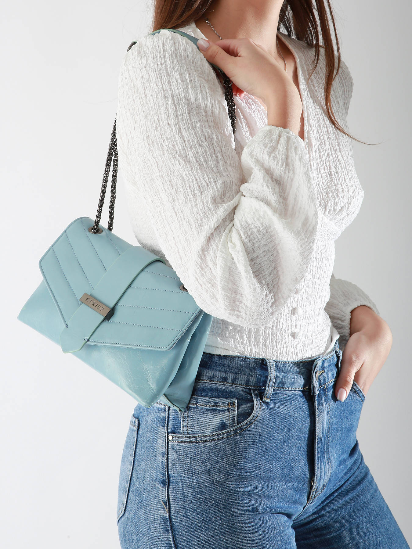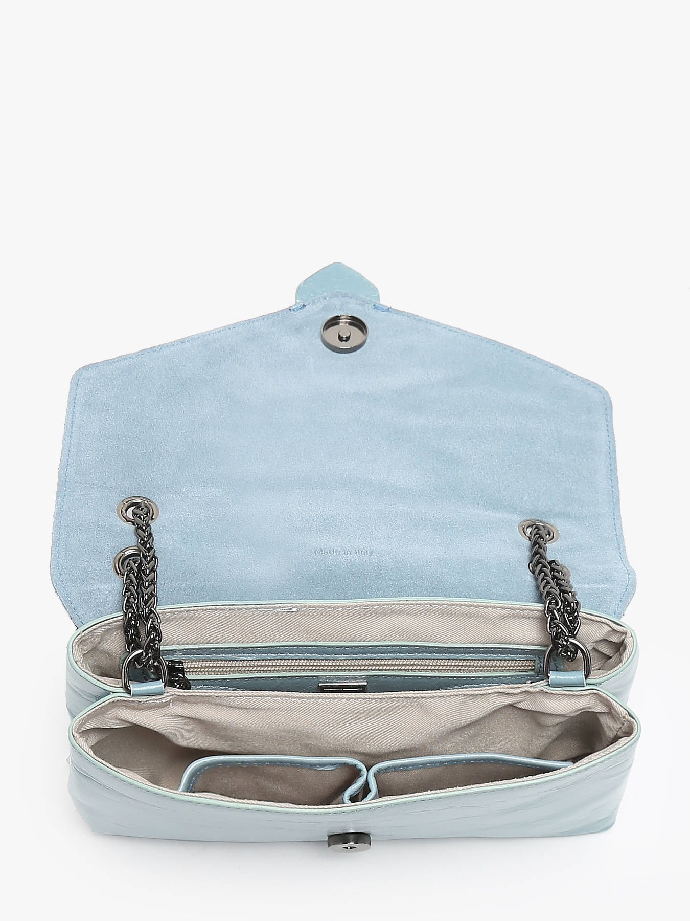 De ETRIER cross body tas uit de JANA AMOUR lijn is verkrijgbaar in de grootste maat. Het licht glanzende leer met een craquelé effect geeft het een onderscheidende elegantie. De tas is gemaakt van kalfsleer en heeft een achterzak. De tas sluit met een flap en een magnetische drukknop. Met een schouderriem van ketting en leer kan de tas crossbody of over de schouder gedragen worden. Binnenin bevinden zich twee compartimenten met twee insteekzakken en een ritszak, allemaal gevoerd met katoen.