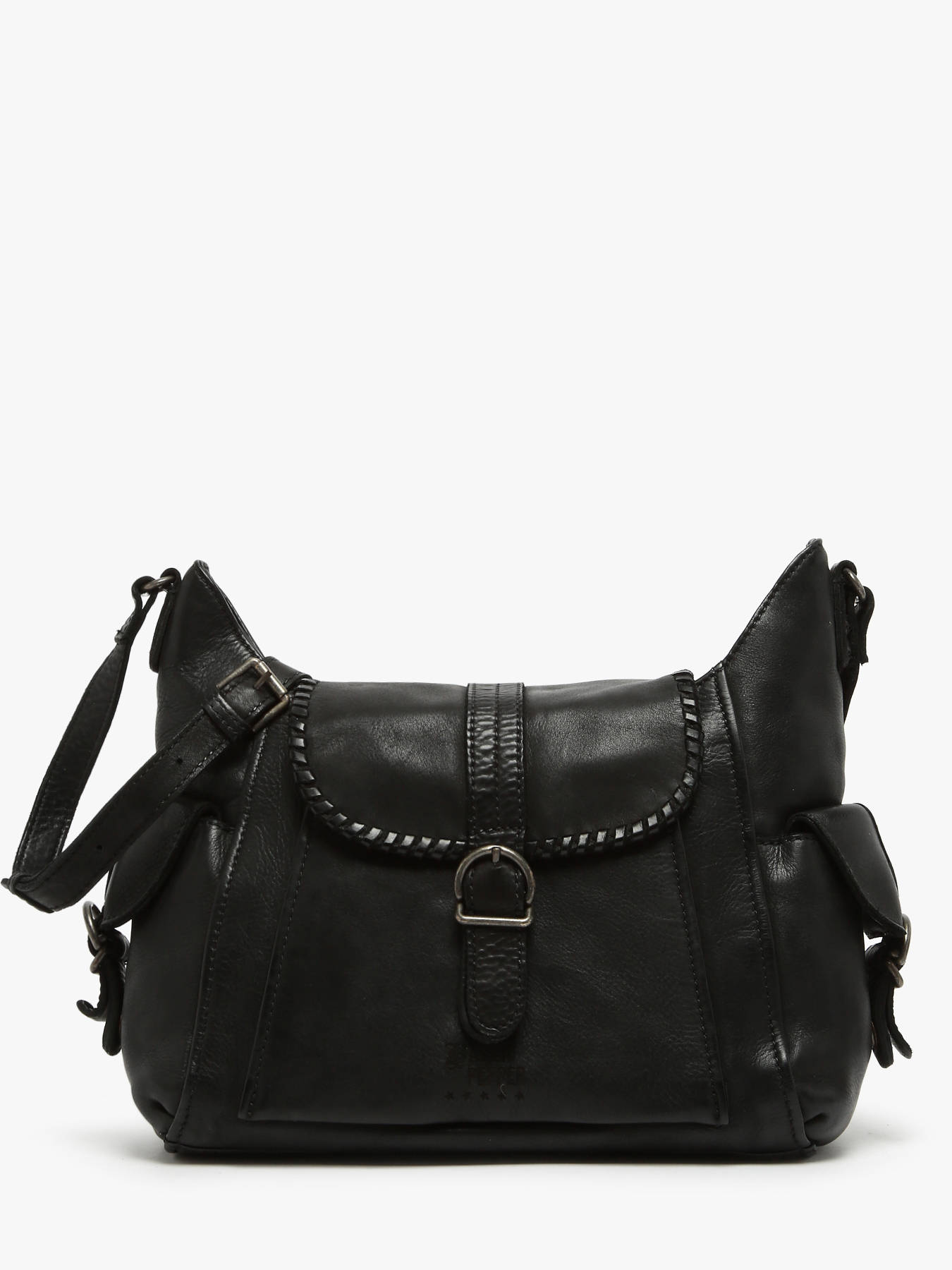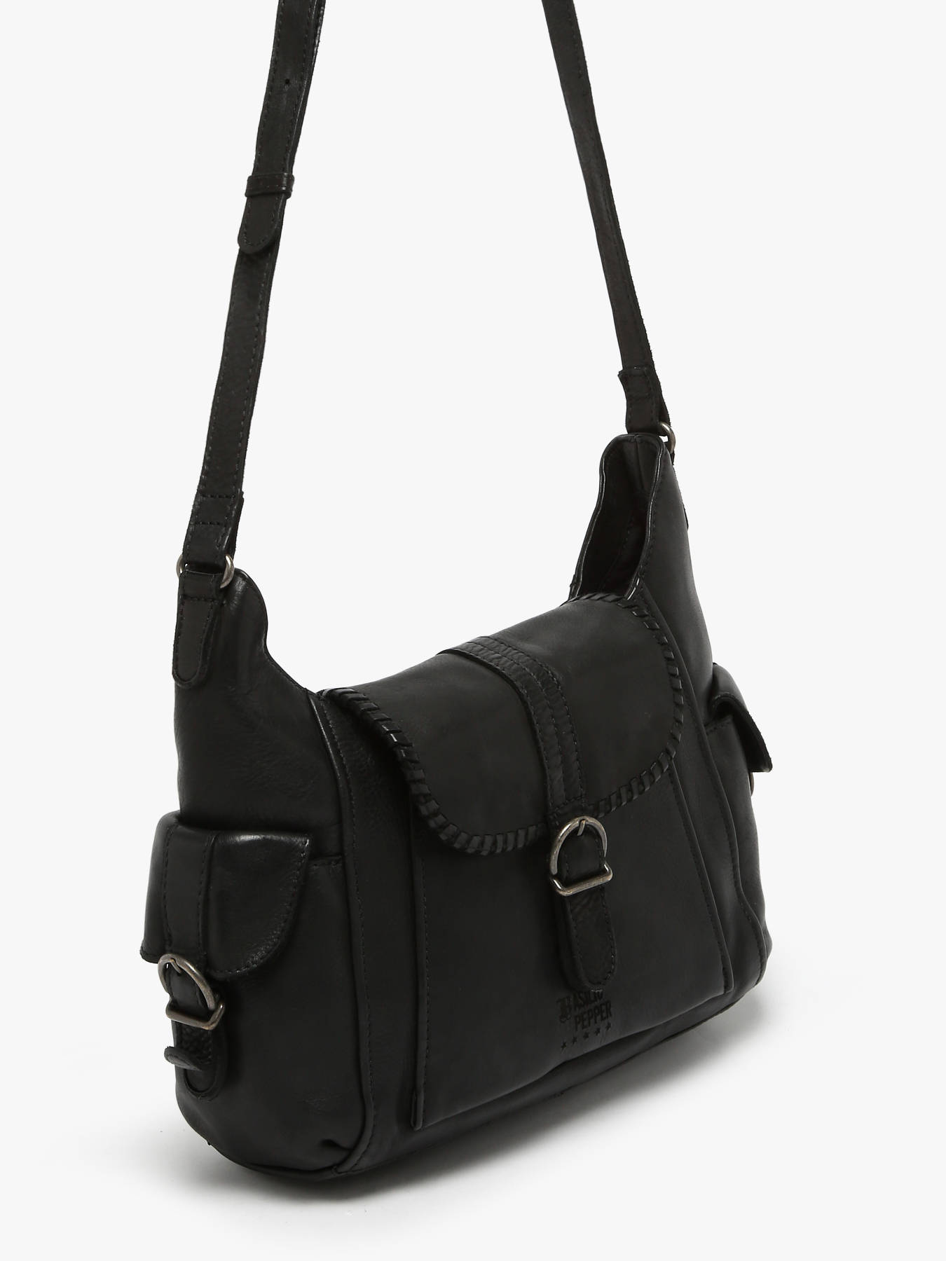 • Schoudertas Utility Leder Basilic pepper Zwart utility BUTI07
