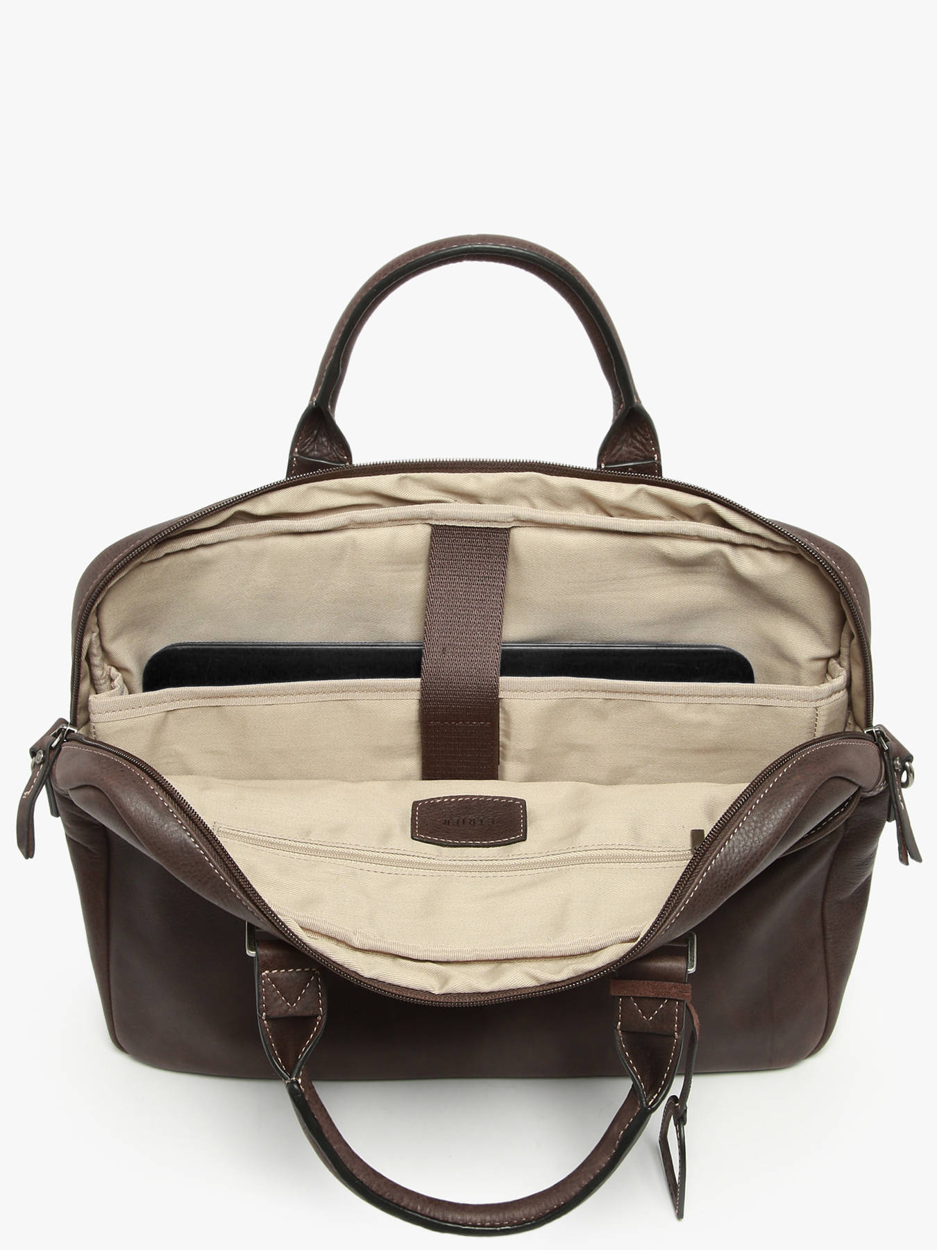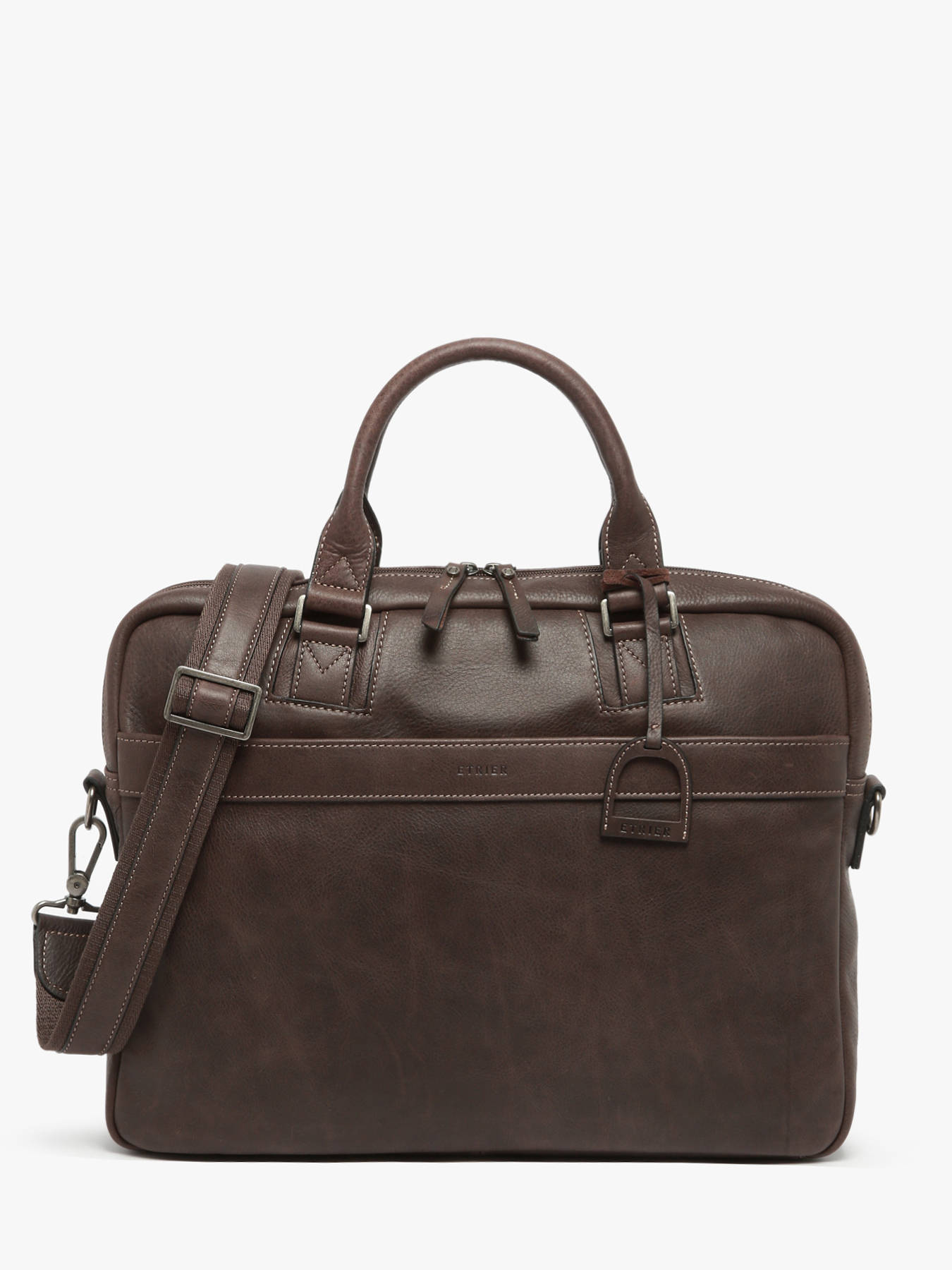 Heren, aarzel niet langer en wees stijlvol als u gaat werken. Etrier biedt u deze prachtige aktentas uit de Spider-lijn, gemaakt van hoogwaardig leer. Ze heeft twee buitenvakken, een rits aan de bovenkant om uw spullen veilig in op te bergen en een verstelbare, afneembare schouderriem, zodat u haar aan de hand of kruislings kan dragen. Binnenin kan u gemakkelijk uw 15"" laptop, een notitieblok, een dossier van A4-formaat, uw kleine spullen in het zakje met rits, enz. kwijt. Uw collega's zullen jaloers zijn op uw prachtige aktentas.