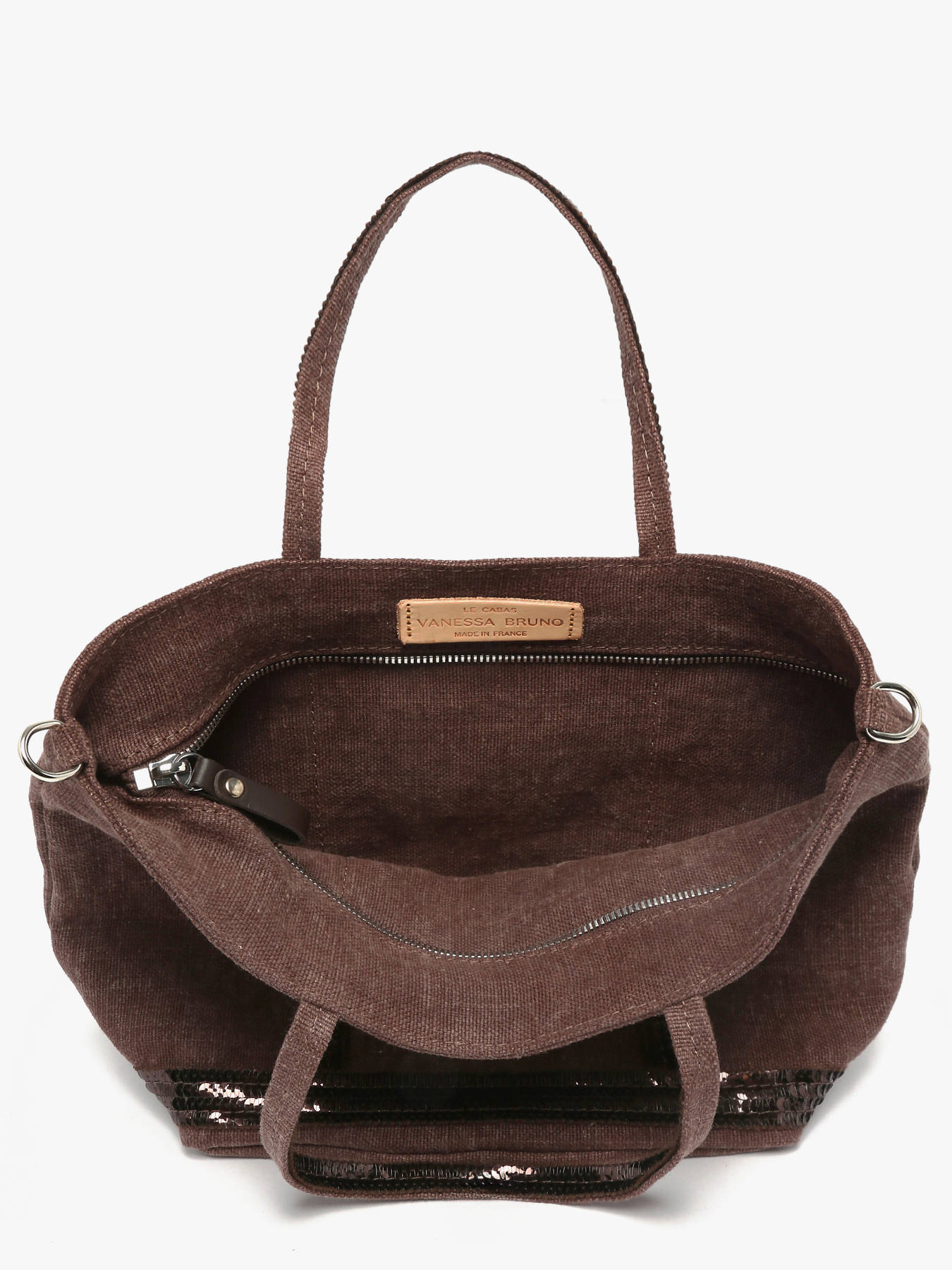 Deze kleine Vanessa Bruno handtas is exact wat u nodig heeft deze komende zomer! Dit model werd gemaakt van linnen en werd afgewerkt met glinsterende pailletten. Het tasje sluit met behulp van een rits en beschikt over een middelgroot interieur. Deze Vanessa Bruno handtas kan in de hand, kruiselings of lang onder de arm gedragen worden. Aan de binnenkant van de tas werd een etiket toegevoegd met de tekst: ""La Cabas Vanessa Bruno made in France"".
