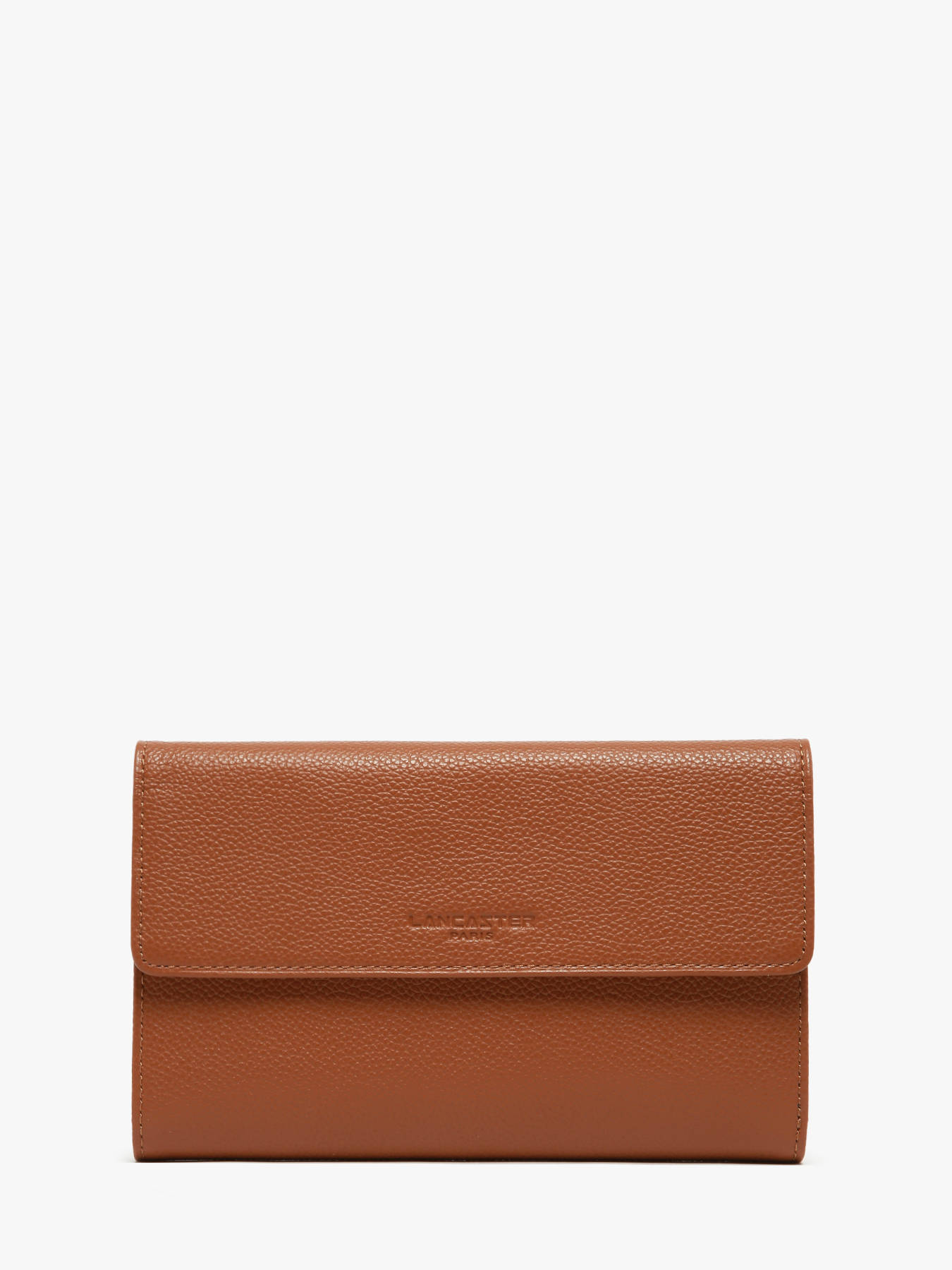 Tweedelige portefeuille uit de Foulonné Pia collectie van Lancaster.Deze portefeuille is gemaakt van een kwaliteitsvol rundsleer met een gekorrelde structuur. Het vorenste deel sluit met een overslagflapje en een drukknop en beschikt over 16 kaartgleuven, twee open steekvakjes en een vak voor biljetten. Het deel met rits achteraan beschikt over twee vakken, gescheiden door een middenvak met rits.