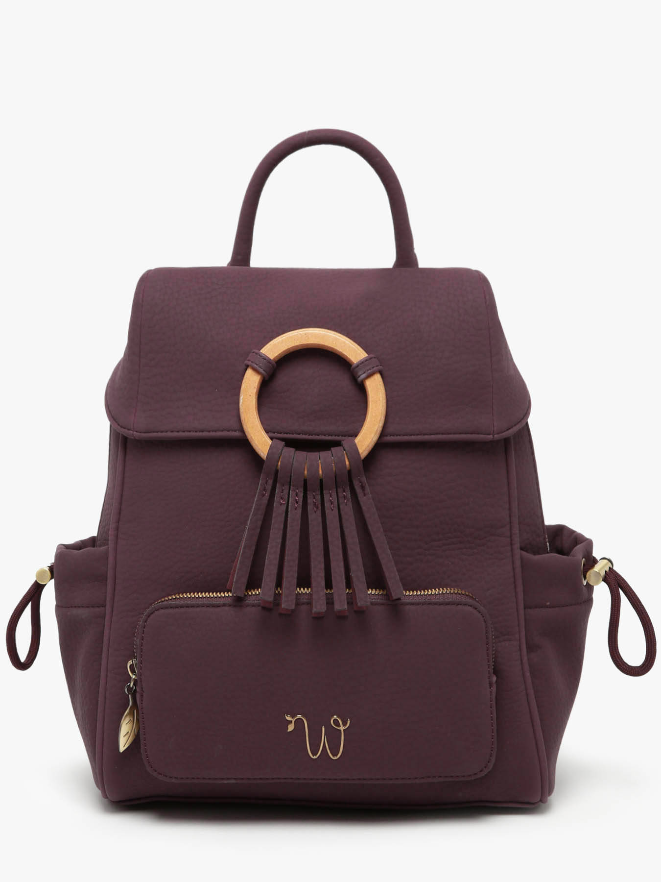 De WOOMEN rugzak uit de CAMOMILLE-lijn combineert stijl en functionaliteit met zijn ontwerp in gerecycled polyurethaan en een voering van katoen en linnen. Hij biedt een hoofdvak met rits, een voorzak, twee zijzakken en een zak aan de achterkant, een magnetische flap, evenals verstelbare schouderbanden in iriserend katoen. De verfijnde details, zoals de houten ringen en franjes, voegen een natuurlijke en elegante touch toe. De tas toont ook een nieuw, onderscheidend logo, wat een moderne en verfijnde uitstraling geeft.
