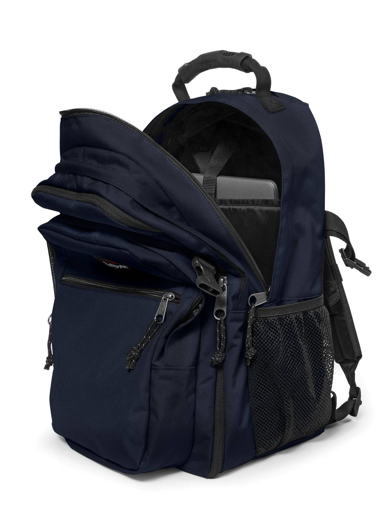 48 cm - 39 liter - 2 kg ~ Praktische 'Tutor' computerrugzak uit de Authentic lijn van het populaire merk Eastpak. Dit model heeft een grote opslagcapaciteit met verschillende compartimenten. Ideaal voor het opbergen van A4 documenten en een 16"" laptop waarvoor een speciaal verstevigd vak voorzien is. Het voorvak met rits is van alle nodige onderverdelingen voorzien voor de kleine spulletjes. Aan de zijkant is er ook een vakje voorzien wat ideaal is om een flesje water in te steken en direct bij de hand te hebben. Zeer comfortabel met zijn gewatterde rug en draagbanden en ergonomische handgreep.