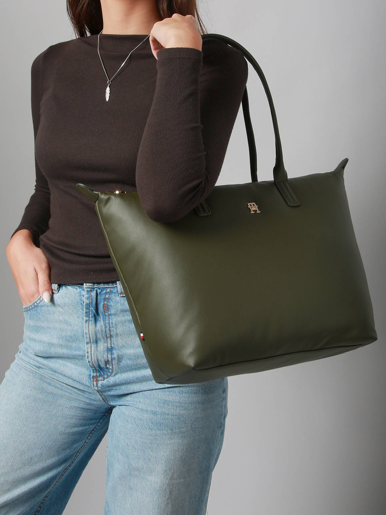 De schoudertas POPETTE van Tommy Hilfiger, gemaakt van nylon met lederen accenten, is een elegant, modern en functioneel accessoire, ontworpen om stijl, comfort en praktisch gebruik in het dagelijks leven te combineren. De combinatie van stevig nylon en verfijnd leer biedt lichtheid, duurzaamheid en verfijning, ideaal voor stedelijk en professioneel gebruik. De ritssluiting houdt je persoonlijke spullen veilig en zorgt tegelijkertijd voor snelle en gemakkelijke toegang tot je essentials. Met een handgreephoogte van 26 cm kan de tas comfortabel als schoudertas worden gedragen, wat zowel praktisch gemak als elegantie biedt. Binnenin zorgen een hoofdvak en een ritsvak voor een efficiënte organisatie van je onmisbare items zoals portefeuille, telefoon, accessoires en documenten. Dankzij het formaat dat geschikt is voor A4-documenten is deze tas perfect voor op kantoor, vergaderingen of je dagelijkse verplaatsingen. Compact maar functioneel, combineert de POPETTE tas eigentijds ontwerp met gebruiksgemak, waardoor het de ideale metgezel is voor je actieve dagen in de stad.