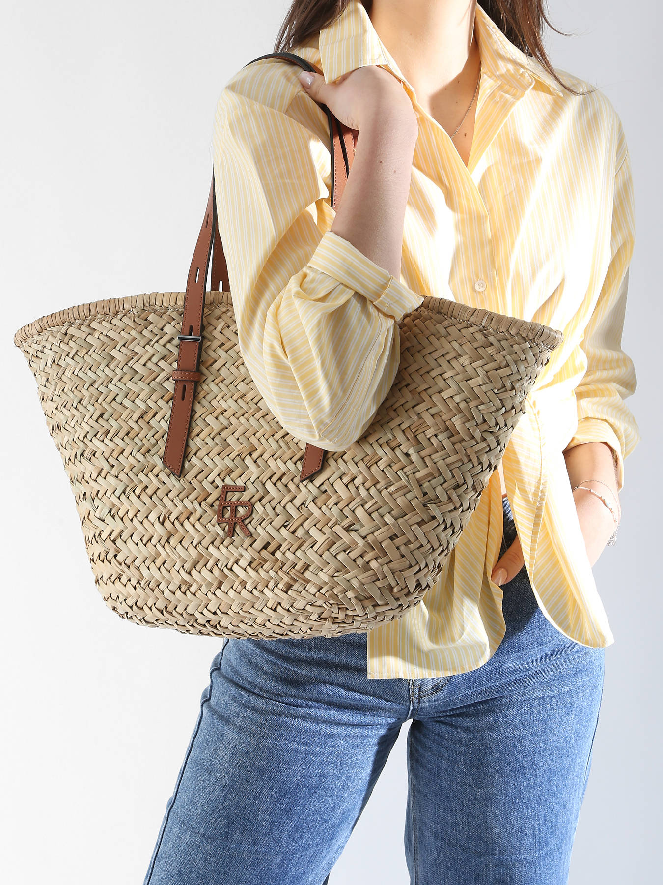 Deze ETRIER schoudertas uit de SHETLAND lijn, gemaakt van riet met leren accenten, combineert praktisch gebruiksgemak en stijl. Hij sluit met een magnetische drukknoop. De schouderriem is verstelbaar via een glijsysteem, met een afneembare binnenzak en een nette voering. Praktisch, biedt hij verschillende zakken en een ruim compartiment. Het leren logo aan de voorkant van de tas geeft een onderscheidende toets.
