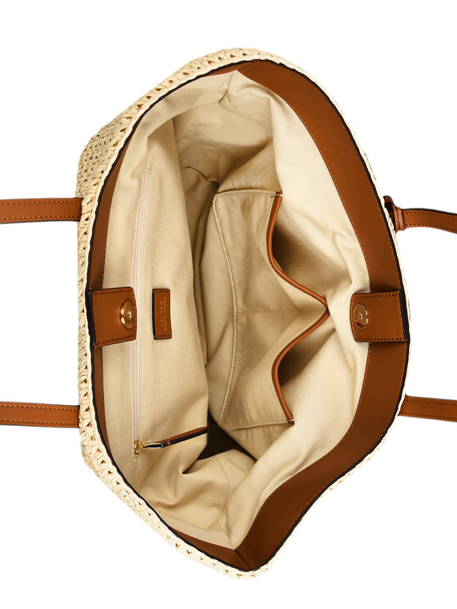 Deze Whitney schoudertas van Lauren Ralph Lauren is gemaakt van handgevlochten raffia, en bezorgt jouw outfit een instant zomergevoel! Deze ruime shopper is afgewerkt met lederen accenten, zoals de twee lange hengsels en het speelse tasjuweeltje met LRL-logo aan de voorzijde. De binnenkant is volledig gevoerd, en sluit met behulp van een drukknopje. Naast het ruime hoofdcompartiment zijn er twee open steekvakjes en een handig ritsvakje te vinden, om kleinere spulletjes afzonderlijk in op te bergen.