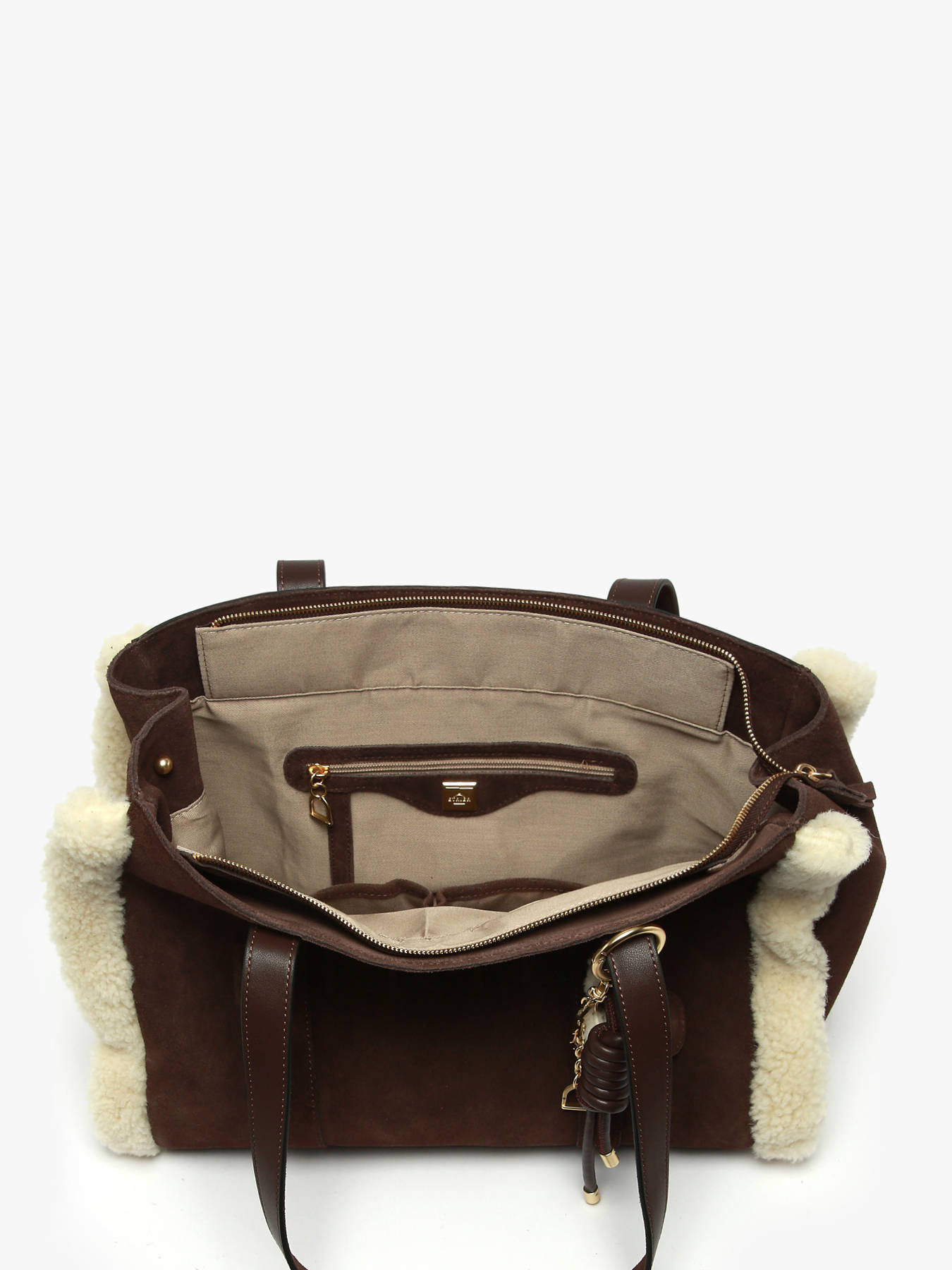 De shopper uit de ALPIN-lijn van ETRIER valt op door zijn warme uitstraling en winterse sfeer. Gemaakt van suèdeleer en afgewerkt met schapenvacht, combineert hij zachtheid met authentieke stijl. De achterkant van glad leer zorgt voor extra duurzaamheid in het dagelijks gebruik. Deze ritstas in een ruim formaat, geschikt voor A4, biedt plaats aan een laptop tot 13 inch. Praktisch en doordacht is het interieur voorzien van twee open vakken en een ritsvak voor optimale organisatie. De signatuurdetailles van de lijn zijn terug te vinden in de buitenzijde aan een grigri-sleutelhanger, met de iconische symbolen van ETRIER en de ALPIN-collectie: want, stijgbeugel en letters van de naam. Een gezellige en functionele tas, ideaal om de winter elegant tegemoet te treden.